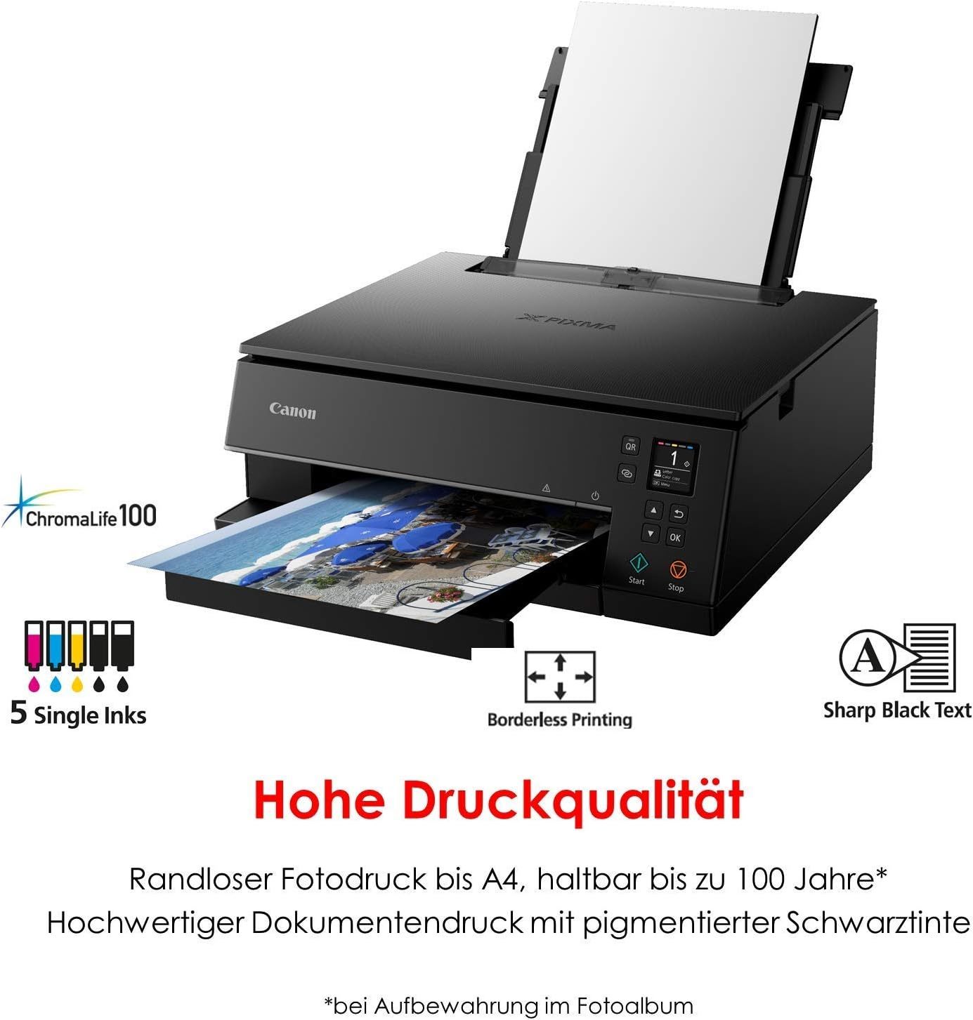 GESTOCHEN SCHARF - Textdokumente und erstklassige Farbfotos; Das 5-Tintensystem liefert beeindruckende Fotos und die spezielle schwarze Pigmenttinte sorgt für gestochen scharfe Textdrucke